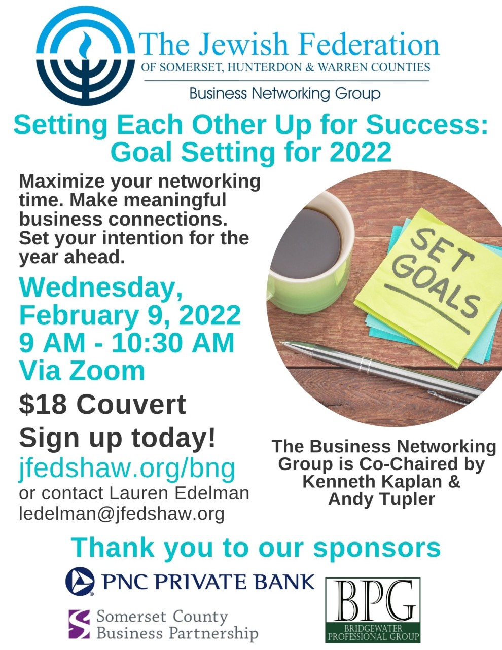 Setting Each Other Up for Success: Goal Setting for 2022 Maximize your networking time. Make meaningful business connections. Set your intention for the year ahead. Wednesday, February 9, 2022 9 AM - 10:30 AM $18 Couvert