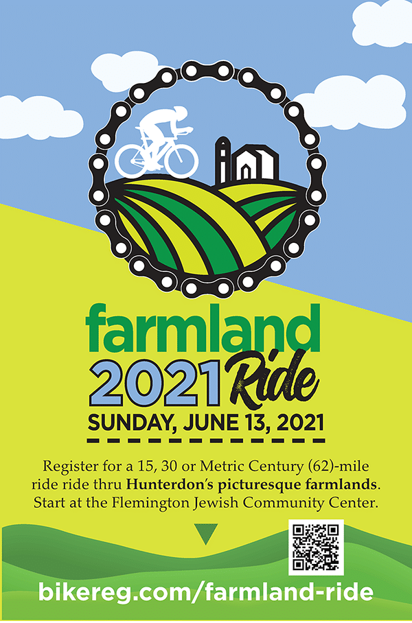 Register for a 15, 30, or Metric Century (62) -mile ride through Hunterdon's picturesque farmlands. Start at the Flemington Jewish Community Center.