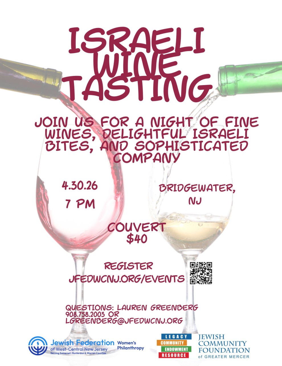Join us for a night of fine wines, delightful Israeli bites, and sophisticated company