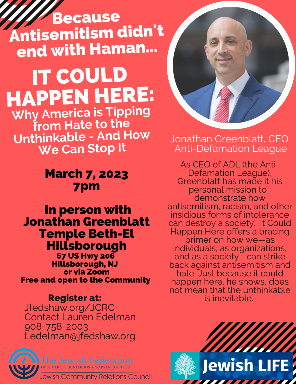 In person with Jonathan Greenblatt Temple Beth-El Hillsborough