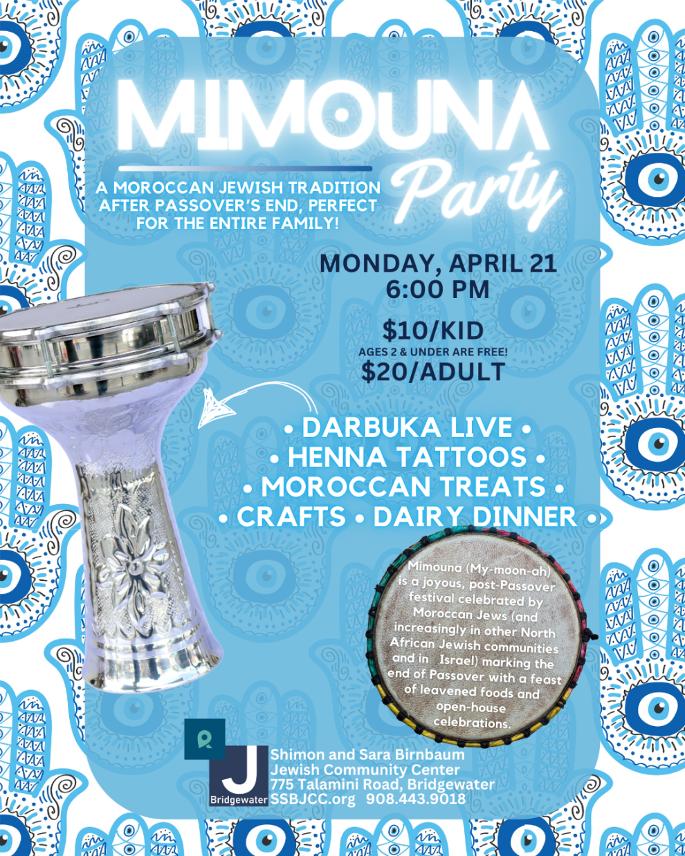 Party for the whole family. Darbuka Live, Henna Tattoos, Crafts, Dairy Dinner, Moroccan Treats