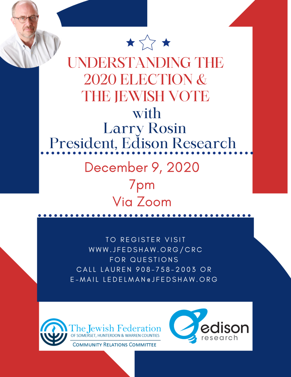 Join Larry Rosin President, Edison Research for a conversation about Understanding the 2020 Election & the Jewish Vote.